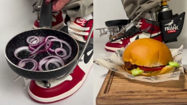 "He Lowkey Cooked": Internet Is In Awe Of Functional Grill Inside Sneakers For On-The-Go Burgers